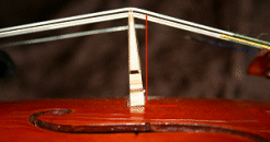この様に駒の背中と楽器の表板が90度となる様、常にご注意してください