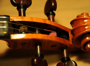 それは表板と裏板の間(楽器の中)に魂柱という楽器の音色に大きな役割を果たす